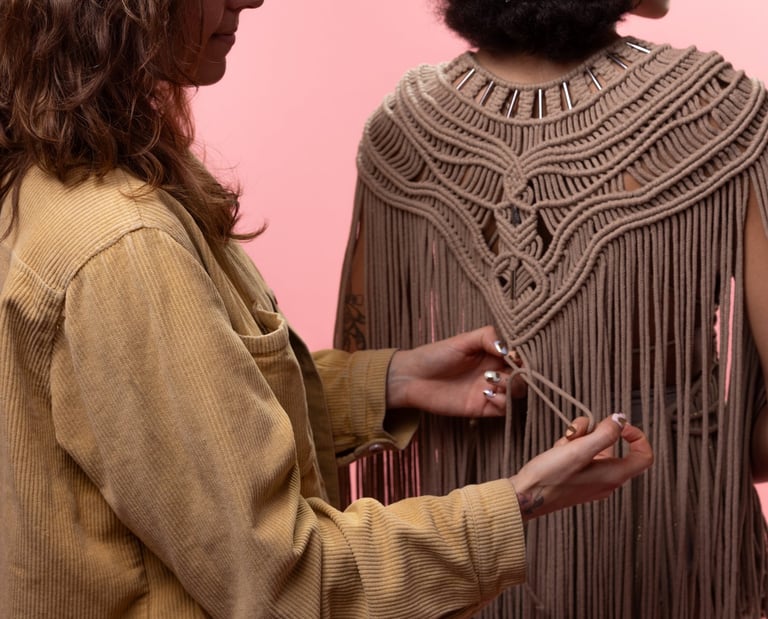 you’re not just adorned in macrame - you’re wrapped in a story, in artistry, in something uniquely yours.